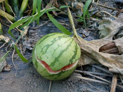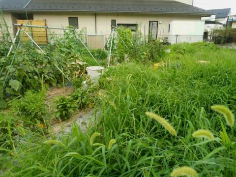草に覆われ 大事なスイカが・・・