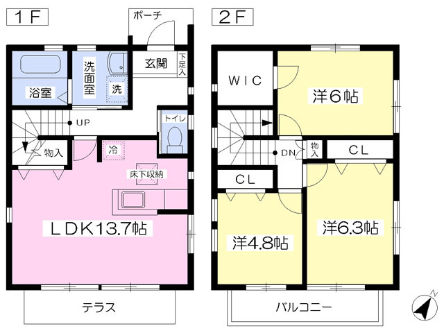 | 設備 | 給湯、BT別、シャワー、追焚、浴室乾燥機、洗面所独立、シャワー付洗面化粧台、温水洗浄便座、3点給湯、角部屋、バルコニー、専用庭、LDK12畳以上、キッチンに窓、浴室に窓、洗面所に窓、下駄箱、床下収納、ウォークインクロゼット、トランクルーム、クロゼット2ヵ所、TVモニタ付ドアホン、駐輪場、駐車場2台分、地上デジタル、BS、カウンタK、対面K、当社管理物件、エアコン、室内洗濯機置場、ガスコンロ設置可 | ||