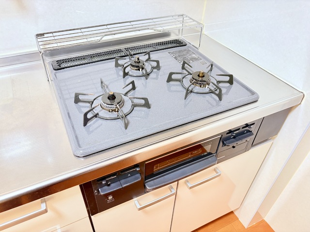 | 設備 | 給湯、BT別、シャワー、脱衣所、洗面所独立、シャワー付洗面化粧台、温水洗浄便座、3点給湯、バルコニー、2面バルコニー、フローリング、エアコン4基以上、収納、クロゼット、押入、下駄箱、TVモニタ付ドアホン、エレベーター、宅配ボックス、地上デジタル、システムK、グリル、シリンダーキー、[管理員区分]非常勤、エアコン、都市ガス、室内洗濯機置場、ガスコンロ三口設置済み | ||