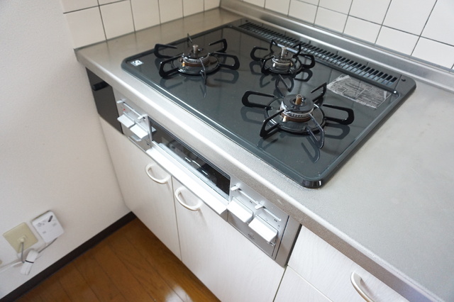 | 設備 | 給湯、BT別、シャワー、洗面所独立、シャワー付洗面化粧台、温水洗浄便座、3点給湯、角部屋、バルコニー、南面リビング、全室フローリング、収納、下駄箱、TVモニタ付ドアホン、駐輪場、地上デジタル、BS、CS、カウンタK、カードキー、エアコン、室内洗濯機置場、ガスコンロ三口設置済み | ||