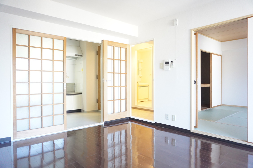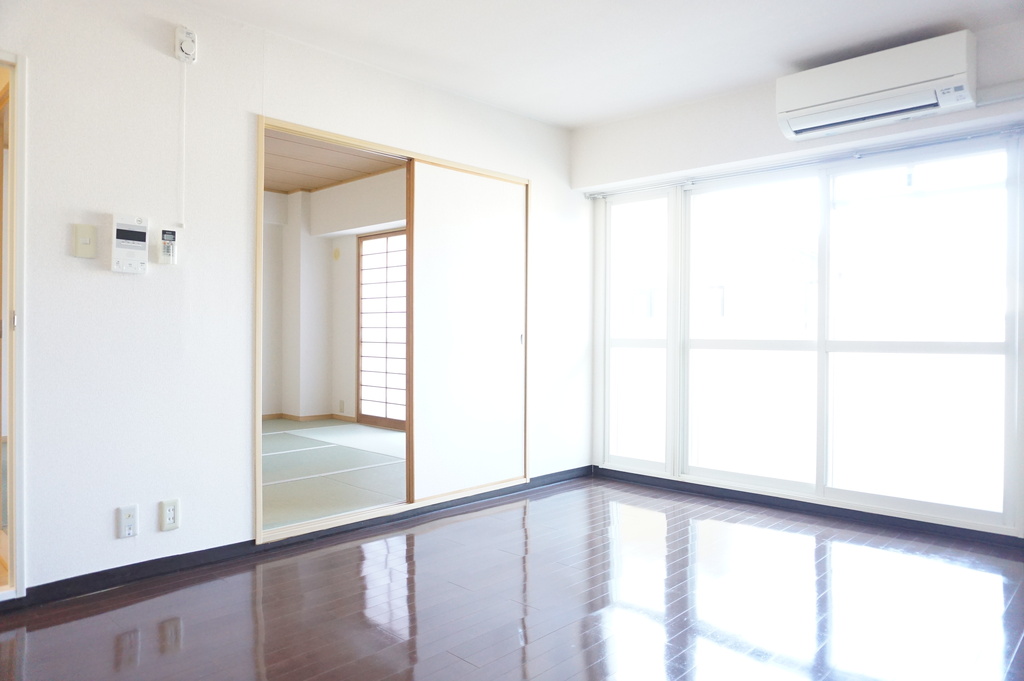 | 設備 | 給湯、BT別、シャワー、洗面所独立、洗面台、温水洗浄便座、バルコニー、フローリング、ペアサッシ、押入、下駄箱、TVモニタ付ドアホン、オートロック、エレベーター、駐輪場、地上デジタル、BS、24h管理、当社管理物件、エアコン、室内洗濯機置場 | ||