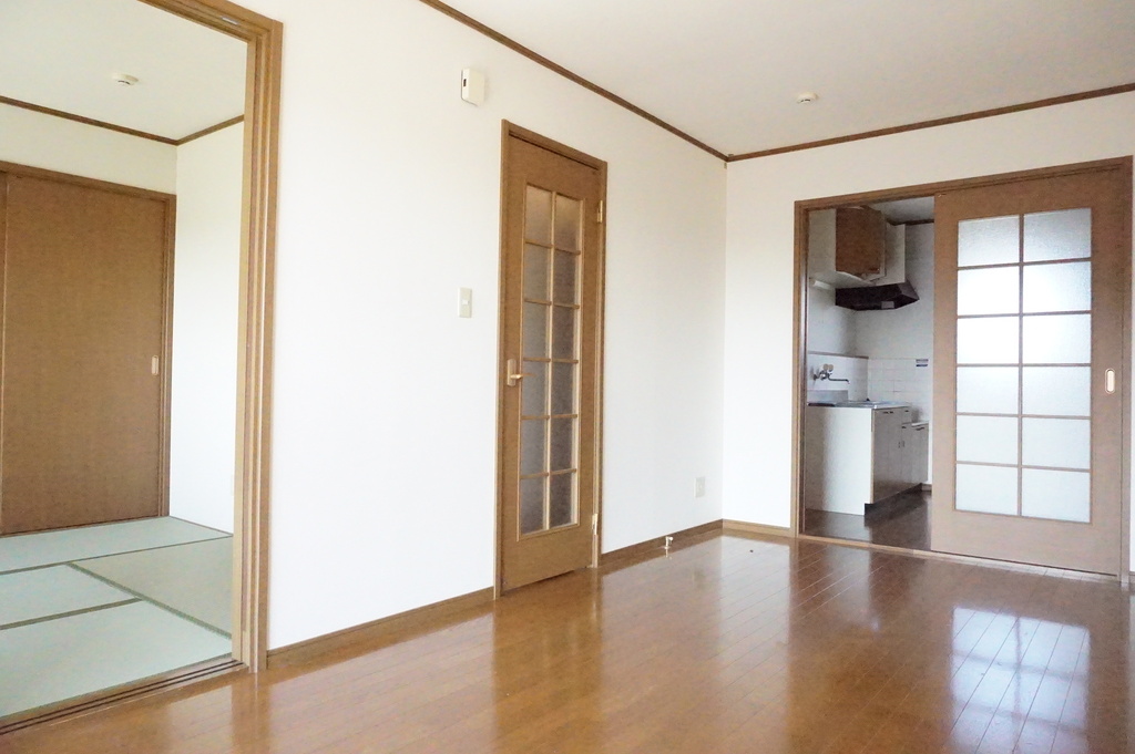 | 設備 | 給湯、BT別、シャワー、洗面所独立、シャワー付洗面化粧台、温水洗浄便座、3点給湯、最上階、角部屋、バルコニー、キッチンに窓、浴室に窓、ペアガラス、押入、下駄箱、収納2ヵ所、宅配ボックス、24h管理、当社管理物件、エアコン、室内洗濯機置場、ガスコンロ設置可 | ||