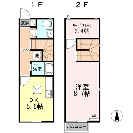 | 建物構造 | 軽量鉄骨 | 所在階/階数 | 1階/ 地上2階建て |