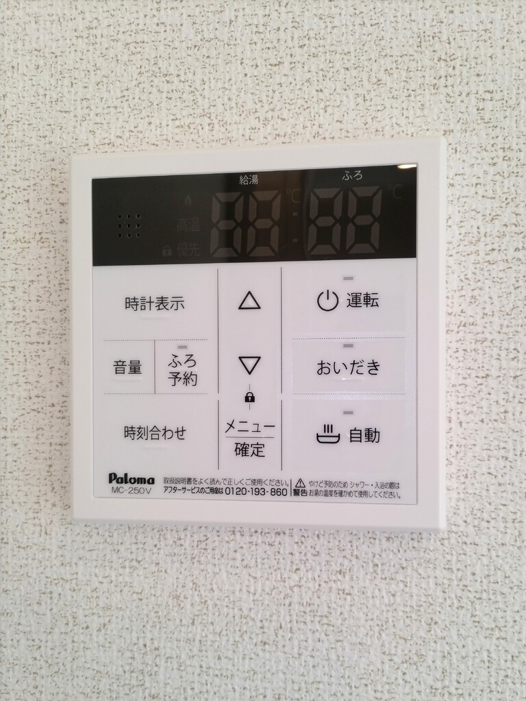 | 設備 | 給湯、BT別、シャワー、追焚、浴室乾燥機、洗面所独立、洗面化粧台、シャワー付洗面化粧台、温水洗浄便座、最上階、サンルーム、エアコン2基、照明付、ペアガラス、24時間換気システム、下駄箱、ウォークインクロゼット、TVモニタ付ドアホン、宅配ボックス、ゴミ置場、駐輪場、インターネット接続可、BS、24h管理、防犯カメラ、システムK、カウンタK、2×4工法、浄水器、インターネット無料、人感照明センサー、室内物干機、エアコン、室内洗濯機置場 | ||