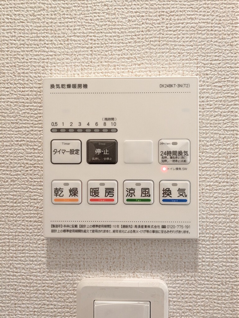 | 設備 | 給湯、BT別、シャワー、追焚、浴室乾燥機、洗面所独立、シャワー付洗面化粧台、温水洗浄便座、最上階、サンルーム、エアコン2基、照明付、ペアガラス、24時間換気システム、下駄箱、ウォークインクロゼット、TVモニタ付ドアホン、宅配ボックス、ゴミ置場、駐輪場、インターネット接続可、BS、24h管理、防犯カメラ、システムK、2×4工法、浄水器、インターネット無料、人感照明センサー、室内物干機、エアコン、都市ガス、室内洗濯機置場 | ||
