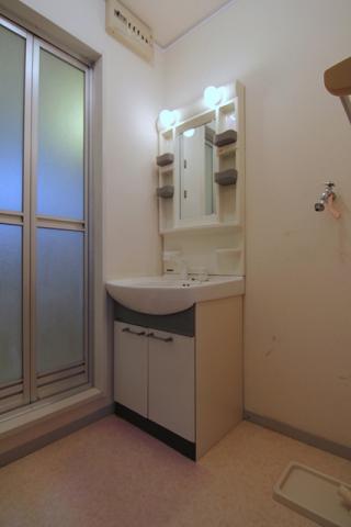 独立洗面化粧台とその横のスペースが室内洗濯機置場です