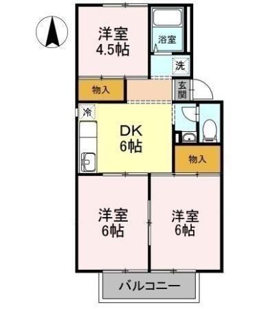 | 設備 | 給湯、BT別、シャワー、脱衣所、洗面所独立、洗面化粧台、温水洗浄便座、最上階、バルコニー、南面2室、キッチンに窓、収納、駐輪場、地上デジタル、エアコン、室内洗濯機置場、ガスコンロ設置可 | ||