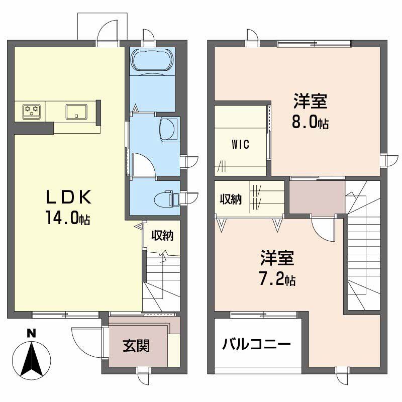 | 設備 | 給湯、BT別、シャワー、追焚、脱衣所、洗面所独立、シャワー付洗面化粧台、温水洗浄便座、3点給湯、バルコニー、南面リビング、LDK12畳以上、メゾネット(1階-2階)、24時間換気システム、収納、下駄箱、ウォークインクロゼット、TVモニタ付ドアホン、システムK、カウンタK、対面K、室内物干機、エアコン、室内洗濯機置場、設置済み | ||