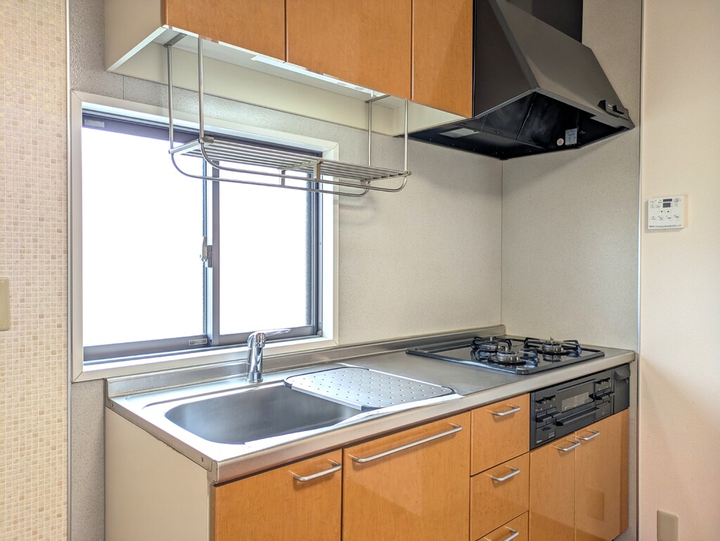 | 設備 | 給湯、BT別、シャワー、追焚、脱衣所、洗面所独立、シャワー付洗面化粧台、温水洗浄便座、3点給湯、最上階、1フロア2住戸、角部屋、バルコニー、南面2室、キッチンに窓、浴室に窓、照明付、クロゼット、押入、下駄箱、TVモニタ付ドアホン、宅配ボックス、駐輪場、インターネット接続可、BS、システムK、インターネット無料、室内物干機、エアコン、都市ガス、室内洗濯機置場、ガスコンロ三口設置済み | ||