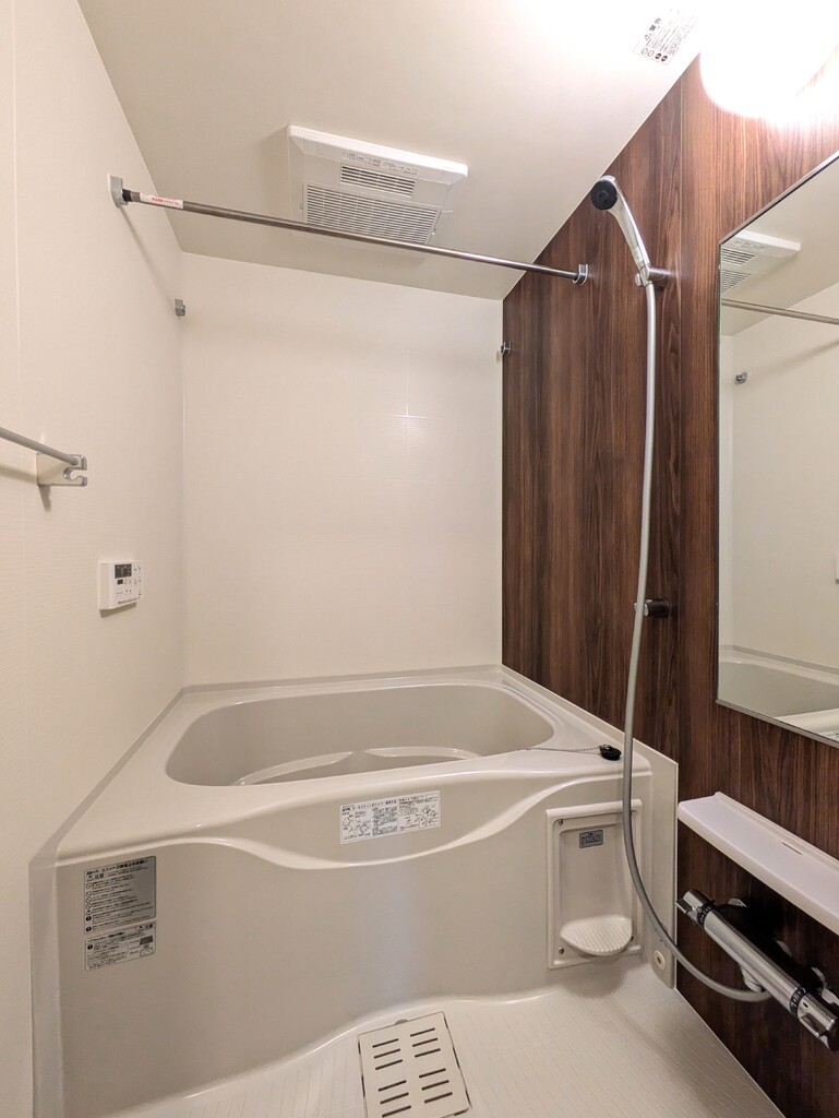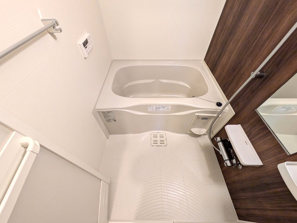 | 設備 | 給湯、BT別、シャワー、追焚、浴室乾燥機、洗面所独立、シャワー付洗面化粧台、温水洗浄便座、暖房便座、最上階、角部屋、バルコニー、エアコン2基、照明付、ペアガラス、24時間換気システム、下駄箱、TVモニタ付ドアホン、ゴミ置場、駐輪場、インターネット接続可、BS、24h管理、2×4工法、浄水器、人感照明センサー、エアコン、室内洗濯機置場 | ||