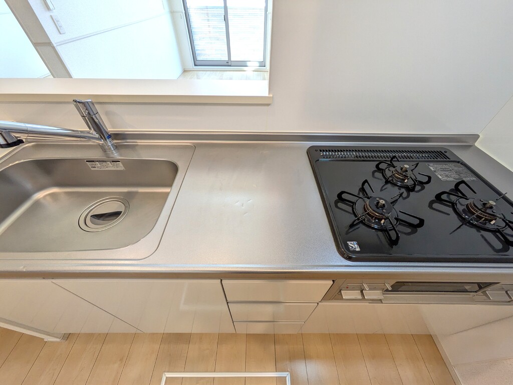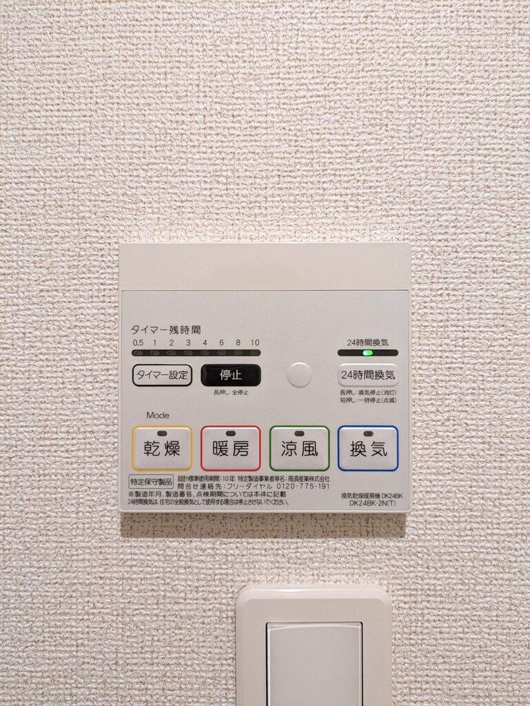 | 設備 | 給湯、BT別、シャワー、追焚、浴室乾燥機、洗面所独立、シャワー付洗面化粧台、温水洗浄便座、暖房便座、バルコニー、エアコン2基、照明付、ペアガラス、24時間換気システム、下駄箱、床下収納、TVモニタ付ドアホン、ゴミ置場、駐輪場、インターネット接続可、BS、24h管理、防犯カメラ、システムK、カウンタK、2×4工法、浄水器、人感照明センサー、エアコン、室内洗濯機置場 | ||