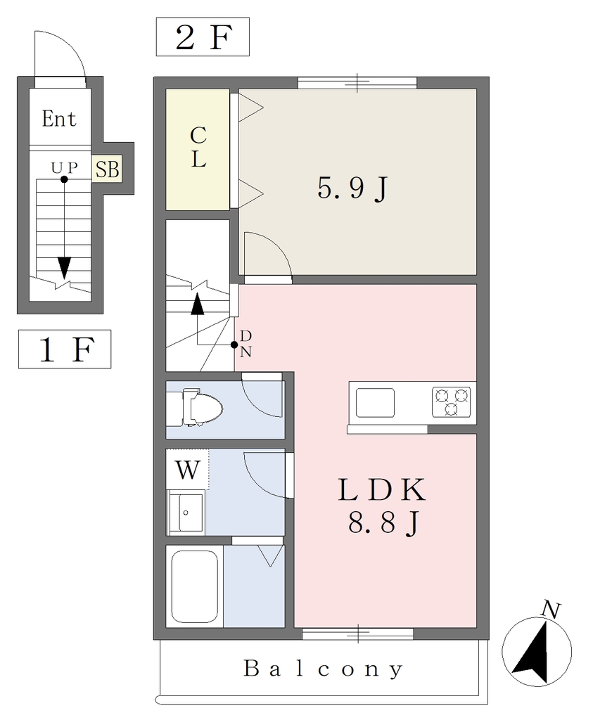 | 建物構造 | 木造 | 所在階/階数 | 2階/ 地上2階建て |