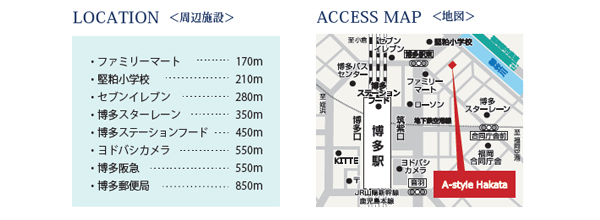 ●物件名/A-style Hakata ●所在地/福岡市博多区博多駅東1丁目10-10
