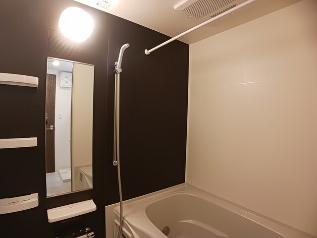 | 設備 | 給湯、BT別、シャワー、追焚、浴室乾燥機、洗面所独立、シャワー付洗面化粧台、温水洗浄便座、バルコニー、照明付、ペアガラス、24時間換気システム、下駄箱、TVモニタ付ドアホン、オートロック、宅配ボックス、ゴミ置場、駐輪場、インターネット接続可、BS、CS、24h管理、防犯カメラ、システムK、外壁タイル、ダブルロックキー、オートバス、浄水器、インターネット無料、人感照明センサー、室内物干機、エアコン、都市ガス、室内洗濯機置場、ガスコンロ二口 | ||