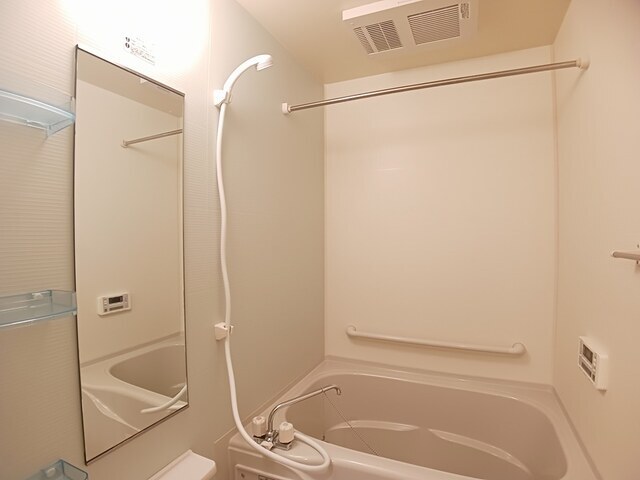 | 設備 | 給湯、BT別、シャワー、追焚、浴室乾燥機、洗面所独立、シャワー付洗面化粧台、温水洗浄便座、バルコニー、フローリング、照明付、下駄箱、TVモニタ付ドアホン、駐輪場、BS、24h管理、カウンタK、2×4工法、浄水器、エアコン、都市ガス、室内洗濯機置場 | ||