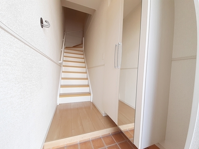 | 設備 | 給湯、BT別、シャワー、追焚、浴室乾燥機、洗面所独立、シャワー付洗面化粧台、温水洗浄便座、最上階、バルコニー、浴室に窓、エアコン2基、照明付、ペアガラス、24時間換気システム、下駄箱、ウォークインクロゼット、TVモニタ付ドアホン、宅配ボックス、ゴミ置場、駐輪場、インターネット接続可、BS、24h管理、システムK、カウンタK、グリル、2×4工法、浄水器、インターネット無料、人感照明センサー、室内物干機、エアコン、室内洗濯機置場 | ||