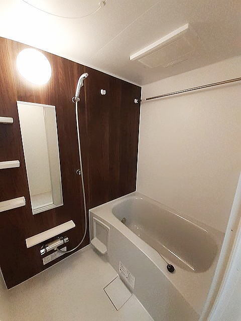 | 設備 | 給湯、BT別、シャワー、追焚、浴室乾燥機、洗面所独立、洗面化粧台、シャワー付洗面化粧台、温水洗浄便座、暖房便座、バルコニー、フローリング、エアコン2基、照明付、ペアガラス、24時間換気システム、下駄箱、床下収納、ウォークインクロゼット、TVモニタ付ドアホン、宅配ボックス、ゴミ置場、駐輪場、インターネット接続可、BS、24h管理、防犯カメラ、システムK、グリル、2×4工法、オートバス、浄水器、シャッター雨戸、人感照明センサー、室内物干機、エアコン、室内洗濯機置場、ガスコンロ二口 | ||