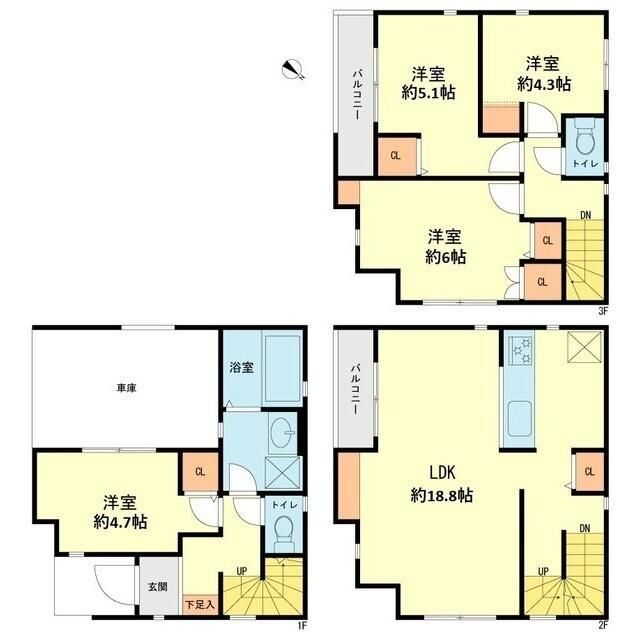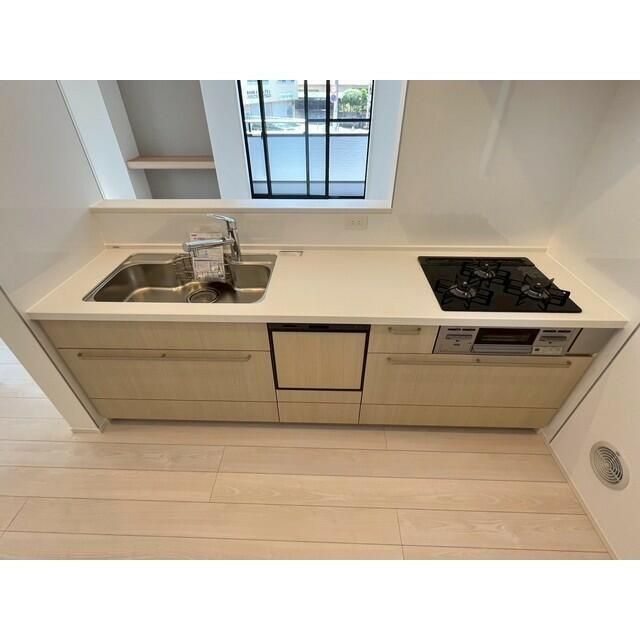 | 設備 | 給湯、BT別、シャワー、追焚、浴室乾燥機、洗面所独立、洗面化粧台、シャワー付洗面化粧台、温水洗浄便座、3点給湯、バルコニー、LDK18畳以上、フローリング、全室フローリング、24時間換気システム、収納、クロゼット、下駄箱、TVモニタ付ドアホン、駐車場2台分、システムK、カウンタK、ダブルロックキー、室内物干機、都市ガス、室内洗濯機置場、ガスコンロ三口設置可 | ||