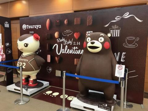 バレンタインスクエアの会場になっている鶴屋ホールに行くと、くまモンと鶴屋のキャラクターと