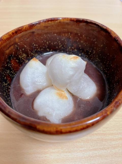 お正月にお土産にいただいたお餅を焼いて鏡開きにはおしるこを作りました♡