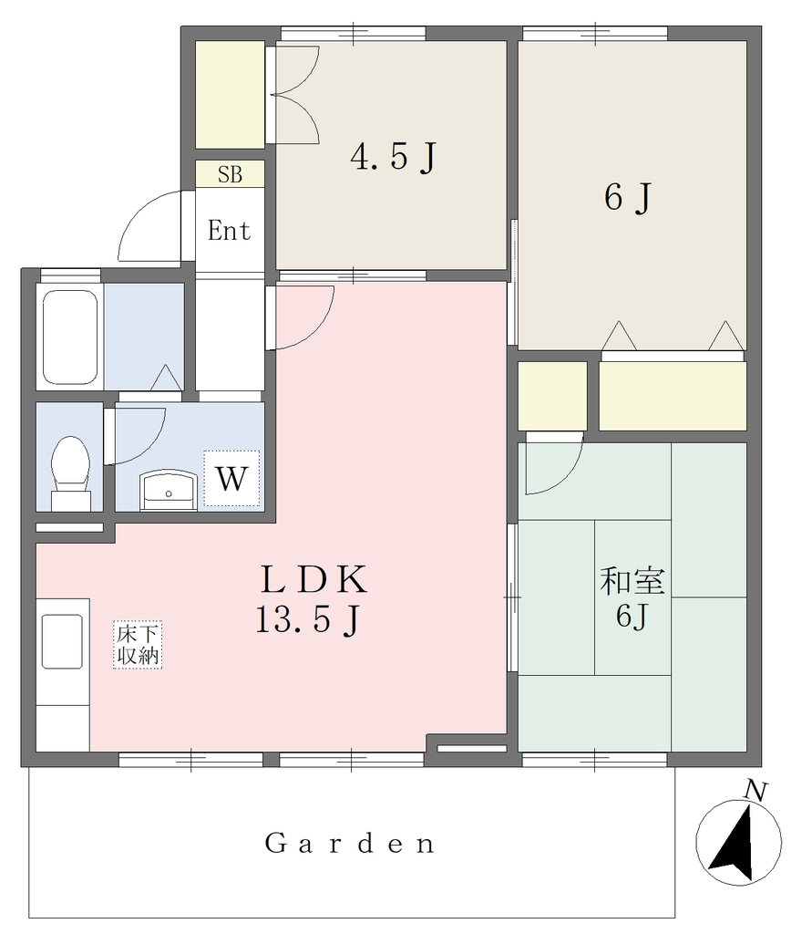 | 設備 | 給湯、BT別、シャワー、洗面所独立、シャワー付洗面化粧台、温水洗浄便座、3点給湯、専用庭、LDK12畳以上、浴室に窓、フローリング、収納、押入、下駄箱、床下収納、TVモニタ付ドアホン、ゴミ置場、駐車場2台分、インターネット接続可、CATV、24h管理、当社管理物件、エアコン、室内洗濯機置場、ガスコンロ設置可 | ||