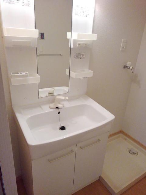 | 設備 | 給湯、BT別、シャワー、追焚、浴室乾燥機、洗面所独立、洗面化粧台、温水洗浄便座、暖房便座、専用庭、浴室に窓、フローリング、下駄箱、床下収納、TVモニタ付ドアホン、ゴミ置場、駐輪場、BS、24h管理、2×4工法、浄水器、エアコン、室内洗濯機置場 | ||