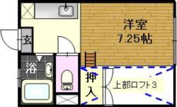 | 設備 | 給湯、BT別、シャワー、温水洗浄便座、フローリング、ロフト、照明付、収納、クロゼット、下駄箱、駐輪場、地上デジタル、敷地内ゴミ置き場、シリンダーキー、内階段、インターネット無料、CATV使用料不要、エアコン、室内洗濯機置場 | ||