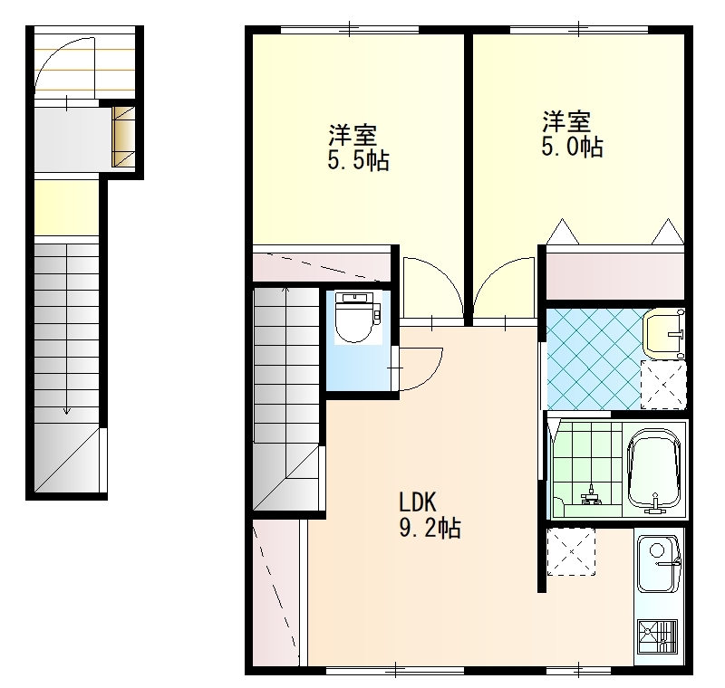 | 建物構造 | 木造 | 所在階/階数 | 2階/ 地上2階建て |