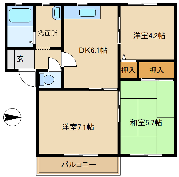 | 設備 | 給湯、BT別、シャワー、脱衣所、洗面所独立、シャワー付洗面化粧台、3点給湯、最上階、バルコニー、畳張替済、フローリング、押入、下駄箱、TVモニタ付ドアホン、駐輪場、インターネット接続可、地上デジタル、BS、防犯カメラ、防犯シャッター、シリンダーキー(ディンプル)、エアコン、室内洗濯機置場、ガスコンロ設置可 | ||