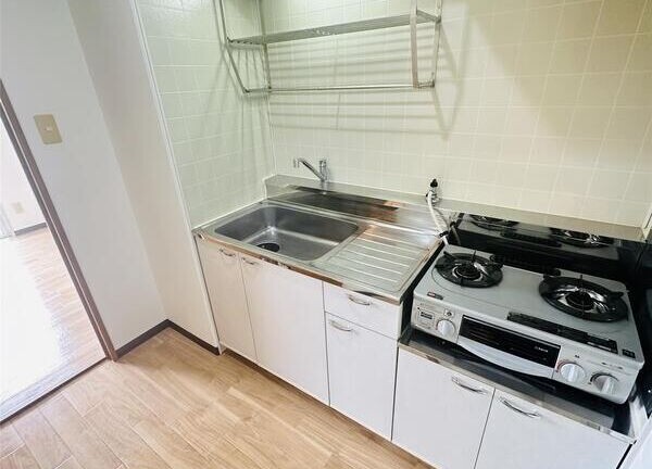 | 設備 | 給湯、BT別、シャワー、温水洗浄便座、最上階、バルコニー、フローリング、照明付、収納、クロゼット、下駄箱、TVモニタ付ドアホン、ゴミ置場、駐輪場、インターネット接続可、地上デジタル、エアコン、都市ガス、室内洗濯機置場、ガスコンロ二口設置済み | ||