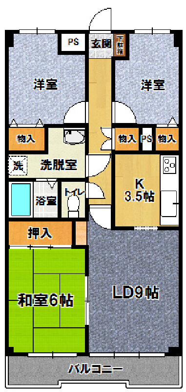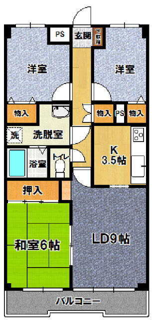 | 設備 | 給湯、BT別、洗面所独立、暖房便座、バルコニー、収納、下駄箱、インターホン、エレベーター、インターネット接続可、地上デジタル、システムK、エアコン、室内洗濯機置場、ガスコンロ三口設置済み | ||