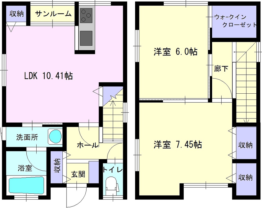| 設備 | 給湯、BT別、シャワー、洗面所独立、シャワー付洗面化粧台、温水洗浄便座、3点給湯、3面採光、サンルーム、上階無し、キッチンに窓、浴室に窓、洗面所に窓、メゾネット(1階-2階)、フローリング、全室フローリング、エアコン2基、各居室照明、照明付、玄関ホール、ペアガラス、収納、下駄箱、ウォークインクロゼット、物置、シューズインクローク、収納3ヵ所、玄関収納、階段下収納、TVモニタ付ドアホン、地上デジタル、BS、対面K、エアコン、室内洗濯機置場、二口設置可 | ||
