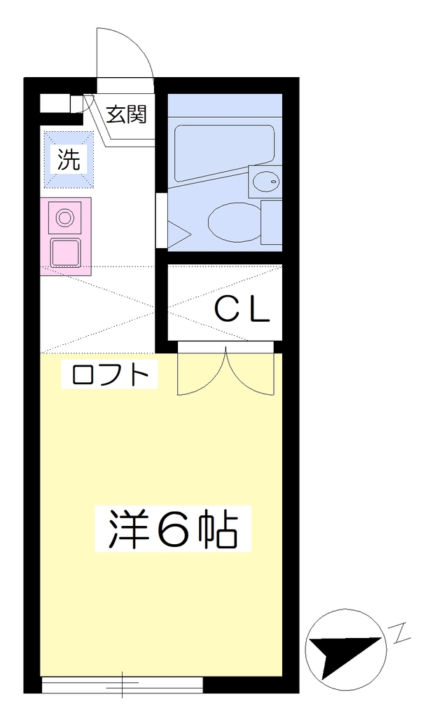 | 設備 | 給湯、BT同室、シャワー、洗面台、ロフト、照明付、クロゼット、下駄箱、TVモニタ付ドアホン、宅配ボックス、ゴミ置場、駐輪場、インターネット接続可、地上デジタル、24h管理、敷地内ゴミ置き場、当社管理物件、エアコン、室内洗濯機置場、IHコンロ一口 | ||