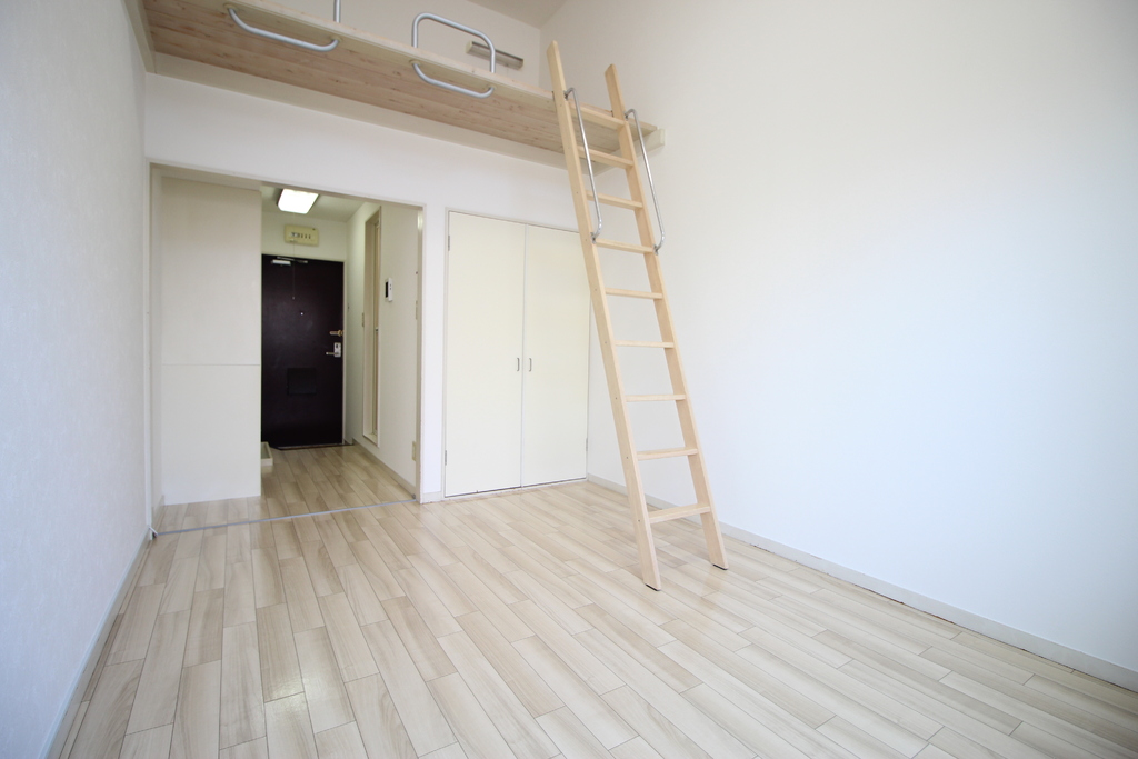 | 設備 | 給湯、BT同室、シャワー、洗面台、最上階、ロフト、照明付、クロゼット、下駄箱、TVモニタ付ドアホン、宅配ボックス、ゴミ置場、駐輪場、インターネット接続可、地上デジタル、24h管理、敷地内ゴミ置き場、冷蔵庫、当社管理物件、エアコン、室内洗濯機置場、IHコンロ一口 | ||