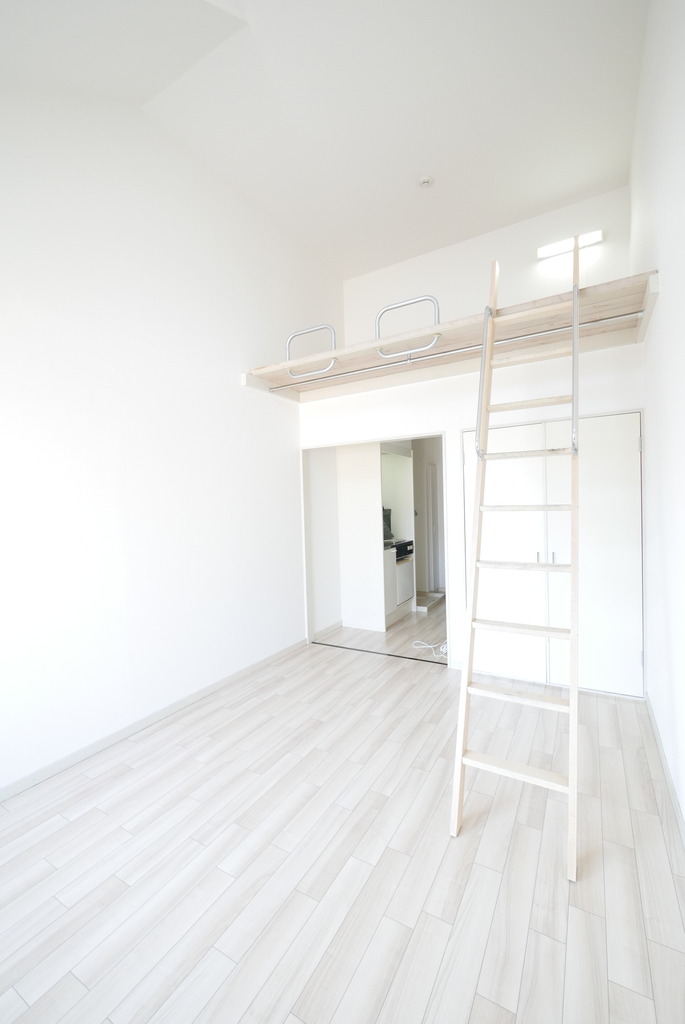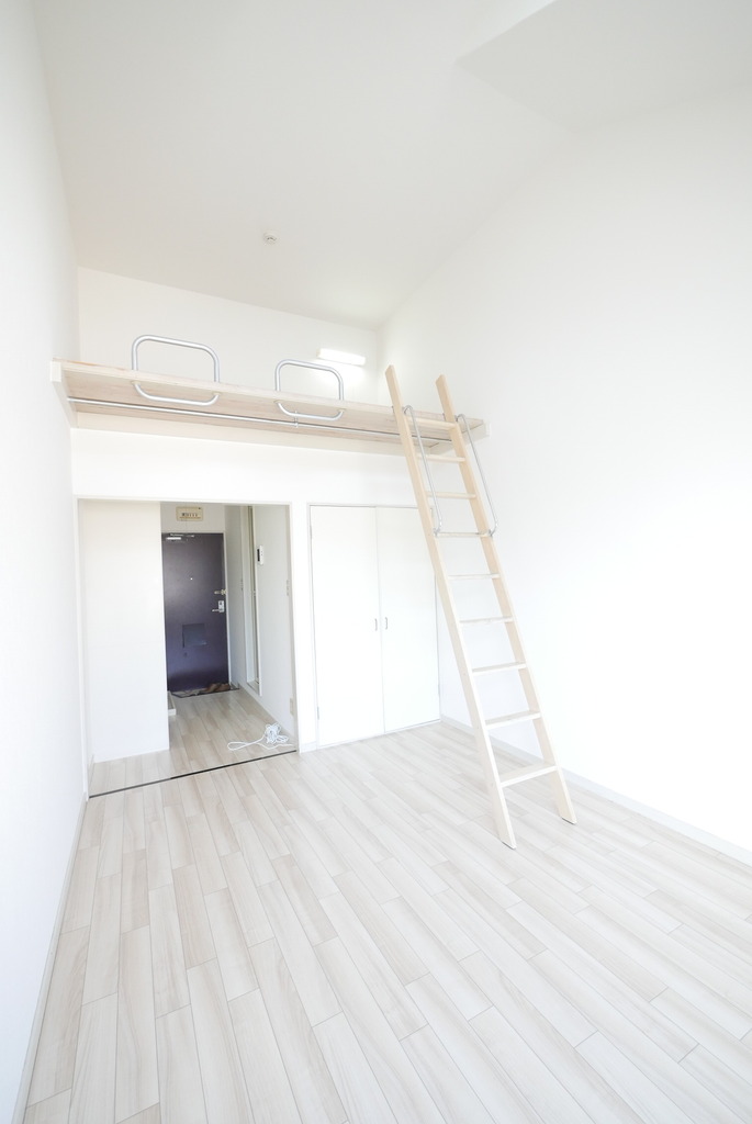 | 設備 | 給湯、BT同室、シャワー、洗面台、最上階、ロフト、照明付、クロゼット、下駄箱、TVモニタ付ドアホン、宅配ボックス、ゴミ置場、駐輪場、インターネット接続可、地上デジタル、24h管理、敷地内ゴミ置き場、当社管理物件、エアコン、室内洗濯機置場、IHコンロ一口 | ||