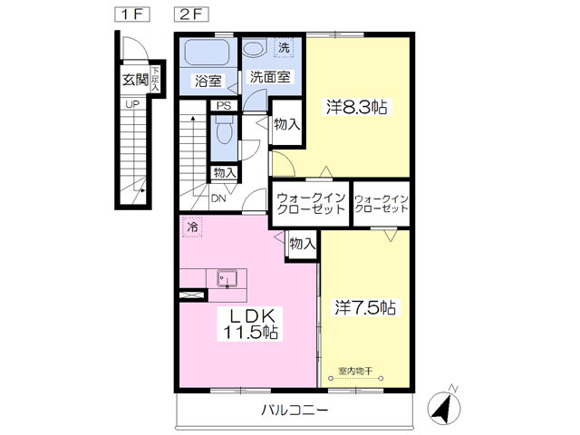 | 建物構造 | 軽量鉄骨 | 所在階/階数 | 2階/ 地上2階建て |