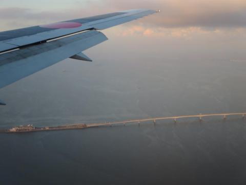 上空から東京湾アクアラインを見て、、、到着です