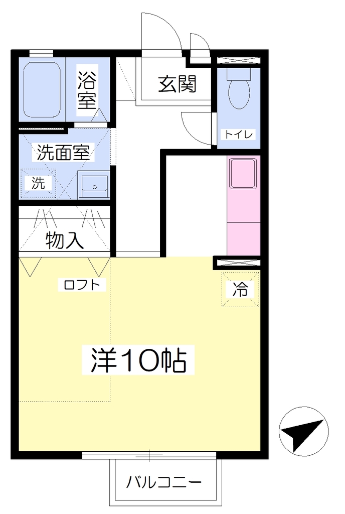 | 設備 | 給湯、BT別、シャワー、洗面所独立、洗面台、温水洗浄便座、3点給湯、最上階、バルコニー、浴室に窓、フローリング、ロフト、クロゼット、下駄箱、TVモニタ付ドアホン、ゴミ置場、インターネット接続可、BS、CATV、24h管理、敷地内ゴミ置き場、当社管理物件、エアコン、室内洗濯機置場、ガスコンロ設置可 | ||