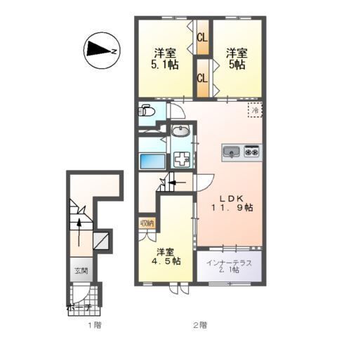 | 建物構造 | 鉄骨 | 所在階/階数 | 2階/ 地上2階建て |