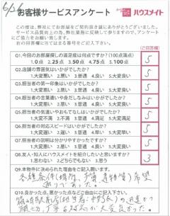 当店でご成約のお客様からご返送頂いたアンケートハガキです