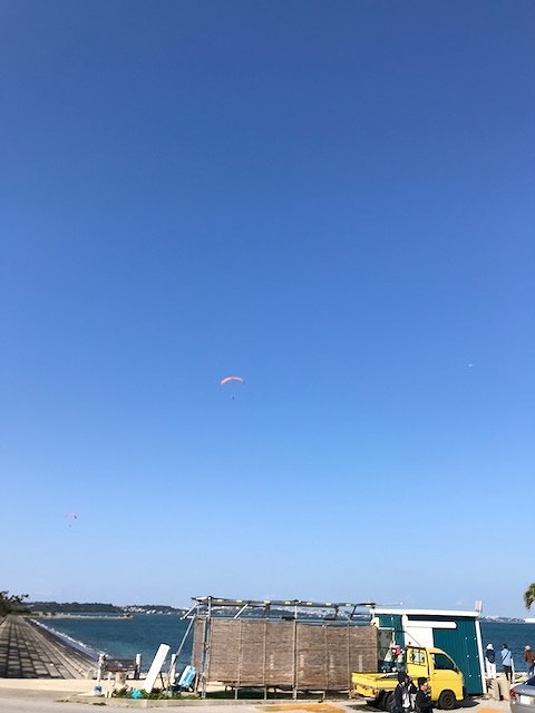 快晴でパラグライダーをしている方たちがいました