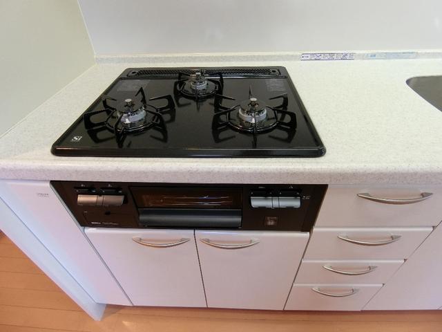| 設備 | 給湯、BT別、浴室乾燥機、洗面所独立、洗面台、温水洗浄便座、角部屋、バルコニー、フローリング、全室エアコン、インターホン、オートロック、エレベーター、宅配ボックス、駐輪場、インターネット接続可(接続環境:光)、地上デジタル、BS、CS、CATV、セキュリティシステム、防犯カメラ、システムK、グリル、ガスレンジ、シリンダーキー、都市ガス、室内洗濯機置場、ガスコンロ三口設置済み | ||