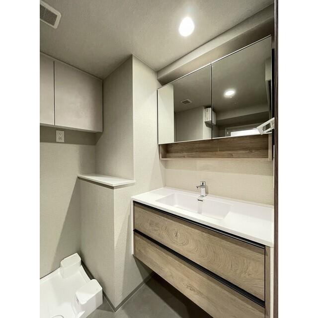 | 設備 | BT別、追焚、浴室乾燥機、洗面所独立、温水洗浄便座、エアコン2基、照明付、ピクチャーレール、24時間換気システム、下駄箱、シューズインクローク、TVモニタ付ドアホン、オートロック、エレベーター、宅配ボックス、ゴミ置場、駐輪場、インターネット接続可、BS、CS、防犯カメラ、システムK、グリル、シリンダーキー(ディンプル)、防音サッシ、24時間ゴミ出し可、インターネット無料、室内物干機、エアコン、室内洗濯機置場 | ||