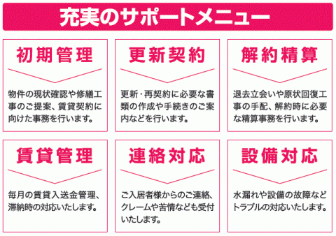 充実のサポートメニューでオーナー様をサポート!!