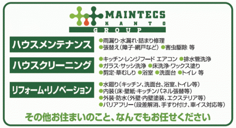 グループ会社【関東メンテックス株式会社】で修繕からクリーニングまでお任せください!!