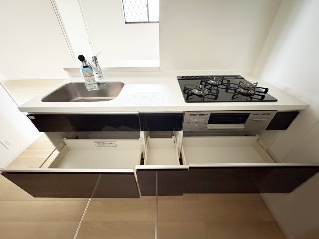 | 設備 | 給湯、BT別、シャワー、追焚、浴室乾燥機、洗面所独立、シャワー付洗面化粧台、温水洗浄便座、フローリング、床下収納、ウォークインクロゼット、TVモニタ付ドアホン、宅配ボックス、駐輪場、BS、CS、防犯カメラ、システムK、カウンタK、インターネット無料、エアコン、室内洗濯機置場、三口設置済み | ||