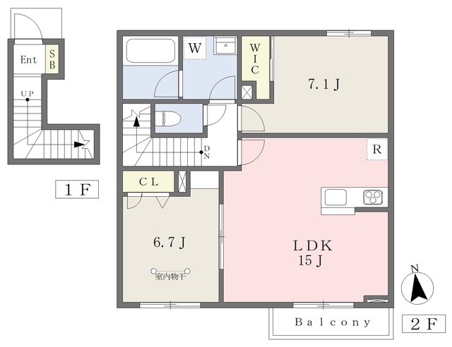 | 建物構造 | 軽量鉄骨 | 所在階/階数 | 2階/ 地上2階建て |