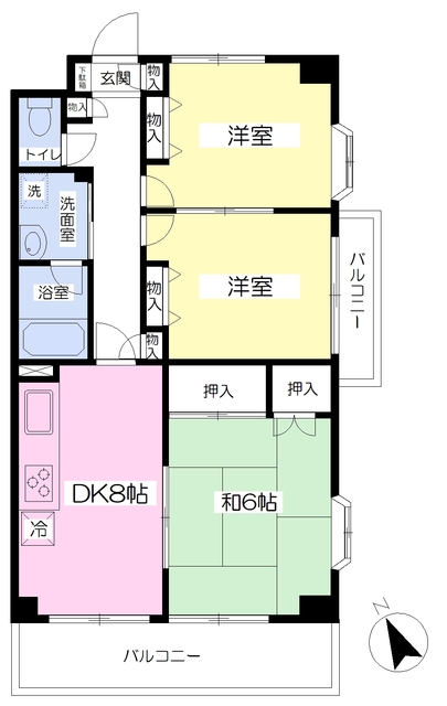 | 3DK/59.2m2 | 1996年5月 | 南西 | 無/無 |