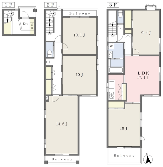 | 設備 | 給湯、BT別、シャワー、追焚、脱衣所、洗面所独立、洗面台、温水洗浄便座、3点給湯、角部屋、バルコニー、メゾネット(2階-3階)、収納、クロゼット、下駄箱、収納3ヵ所、TVモニタ付ドアホン、駐輪場、地上デジタル、システムK、シャッター雨戸、都市ガス、室内洗濯機置場、ガスコンロ三口設置済み | ||