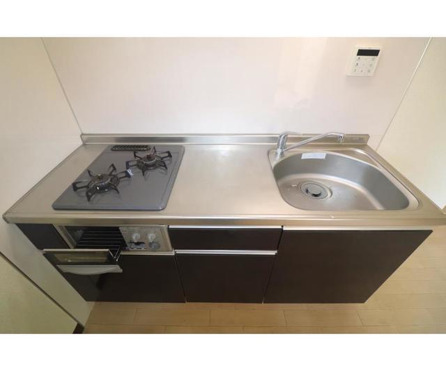 | 設備 | 給湯、BT別、シャワー、追焚、洗面所独立、洗面台、テラス、フローリング、収納、下駄箱、TVモニタ付ドアホン、駐輪場、バイク置場、地上デジタル、システムK、グリル、エアコン、ガスコンロ二口設置済み | ||